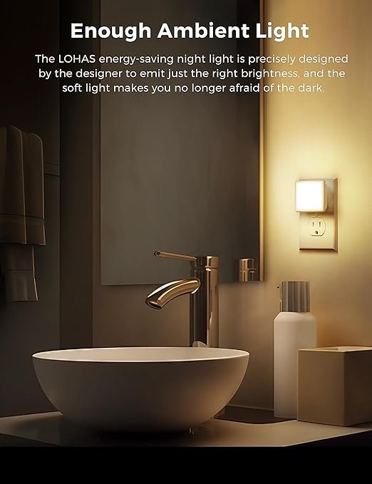 - Soft Brightness: 0.3 watts, 40 lumen, 3000k soft white. Not too bright, not too dim, not dazzling. The LOHAS plug into wall night light guide you in the dark, perfect for home lighting.